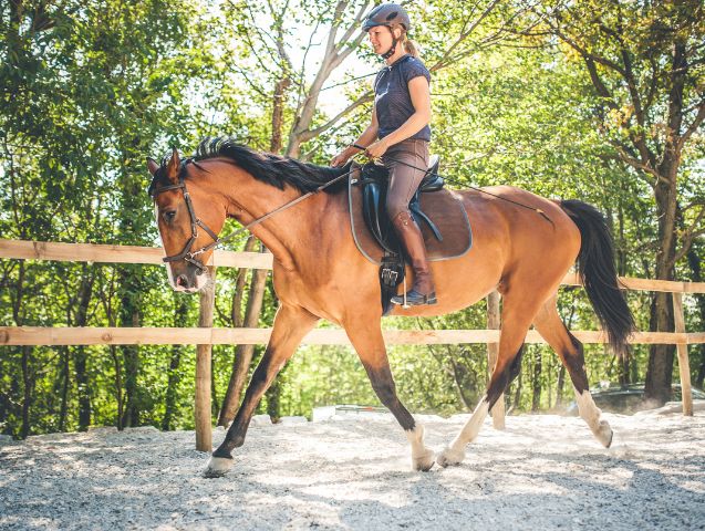 Lorsque vous décidez de reprendre en selle, vous pouvez démarrer le travail par une reprise du cardio, en réalisant par exemple des trottings. Il est important d’y aller très graduellement, en augmentant la durée et la difficulté petit à petit. N’allez jamais au-delà des capacités de votre cheval.